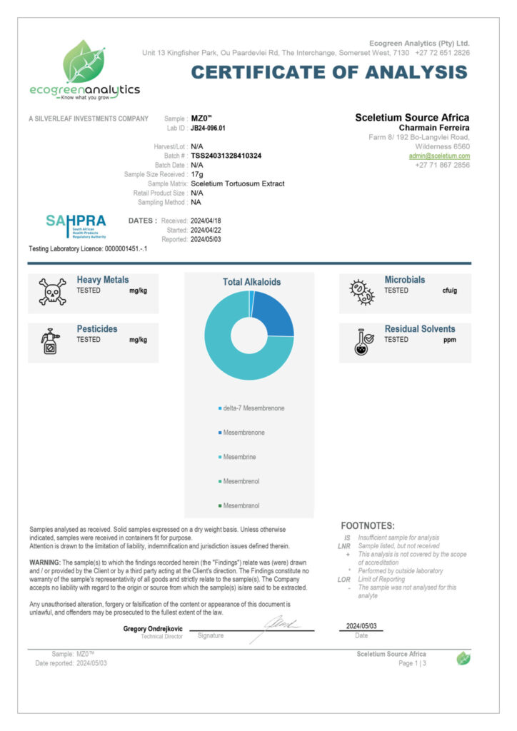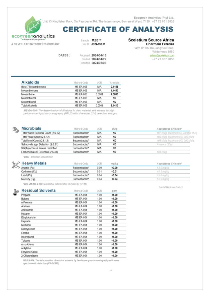*Alkaloid composition may vary by ±2% – 5% from what is listed on labels. These slight variations do not change felt effects. See our Typical COA’s below for alkaloid profiles.